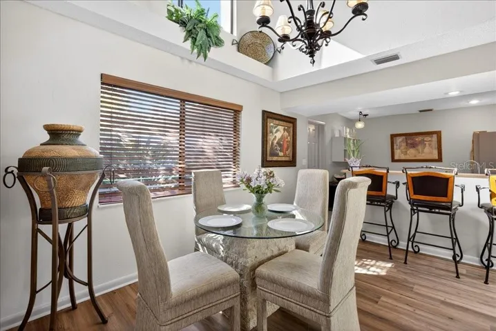 Be wowed from the moment you walk in! Nestled at the end of a quiet cul-de-sac along the Palm Harbor Golf Course, this home is a masterclass in light-filled living. Beneath a 2025 roof, the interior radiates with fresh paint and luxury vinyl flooring under soaring ceilings. Massive windows illuminate the space, while an open staircase offers unobstructed views of the upper-level architecture. Updated bathrooms feature brand-new vanities, hardware, and toilets. Designed for hosting, the layout offers a downstairs half-bath and a private main-level primary suite with French doors leading to the glass-enclosed Florida room. Relax there or on the paved patio, both overlooking the pond and greens. Upstairs, a Jack-and-Jill bath serves guest rooms with ease. This property features a one-car garage with an expansive driveway providing extra space for 4 cars. Enjoy an HOA covering cable, internet, trash, sewer, & exterior maintenance (assessment paid in full)